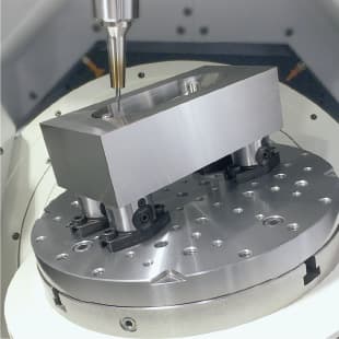 快盈的5轴加工中心用夹具拥有避免刀路干涉的形状,可以使主轴尽可能的在贴近工件的的情况下进行加工。并且拥有强大的夹紧力,在负荷较大的加工环境(例如:一体成型加工或者5轴联动加工等)也能让工件保持固定状态。
