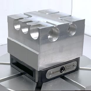 在多品种少批量的生产环境中,为了提高生产效率,能够一次装夹并完成加工的5轴加工中心的运用日益增加。所以,能够尽可能发挥5轴加工中心性能、能进行多面同时加工的虎钳及夹具是必不可少的。