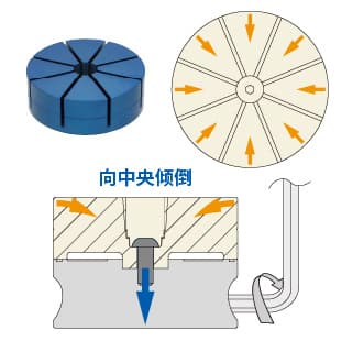 工件定芯及夹紧同时完成。8个方向同步夹紧的筒夹形式,即使只有少量夹紧余料,也能稳定完成夹紧工作。
